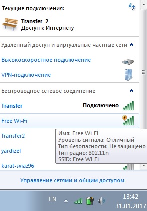 3) Далее: находим название беспроводной сети "Free Wi-Fi" и выбираем ее.